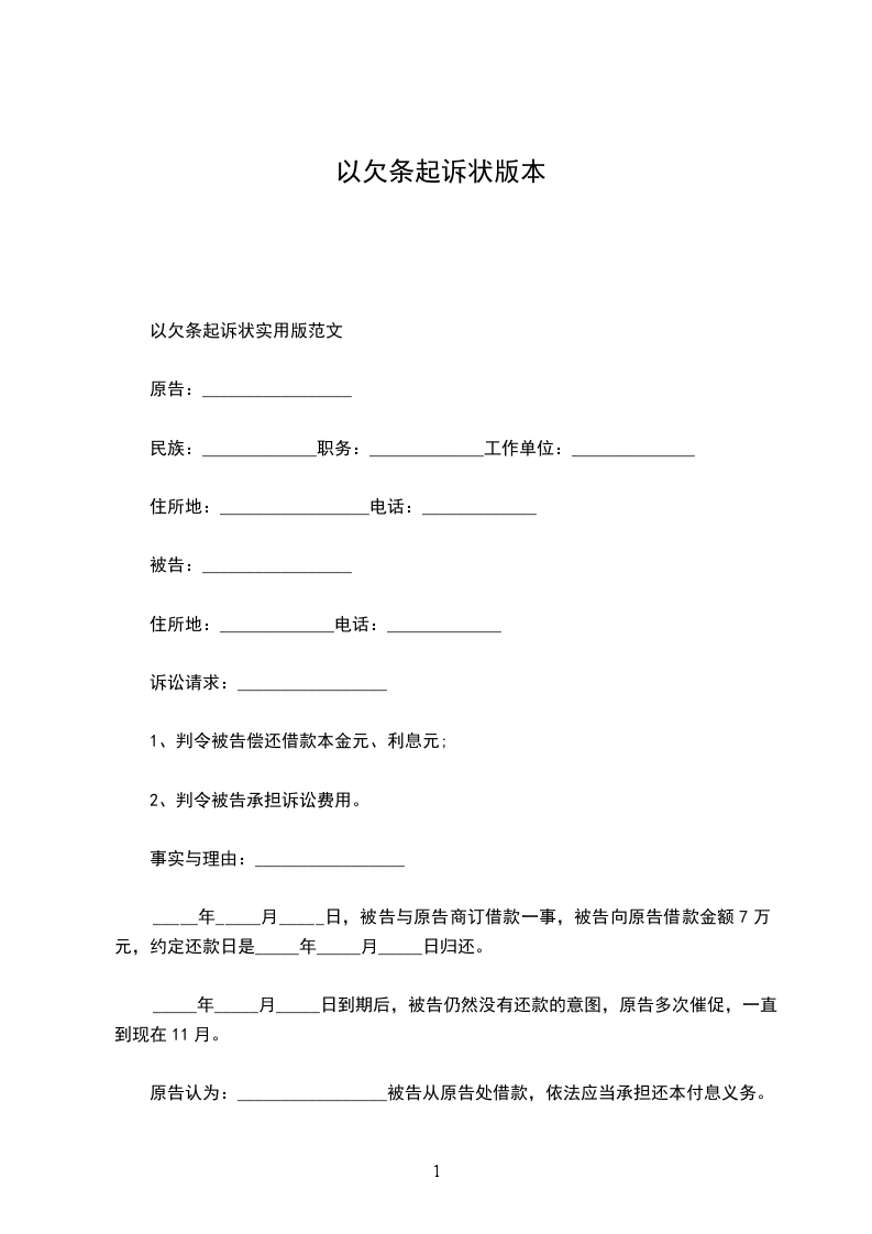 以欠条起诉状实用版范文