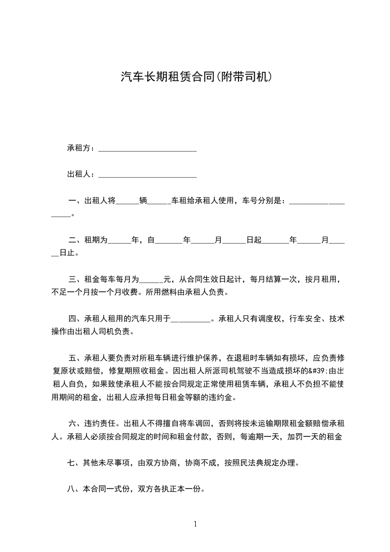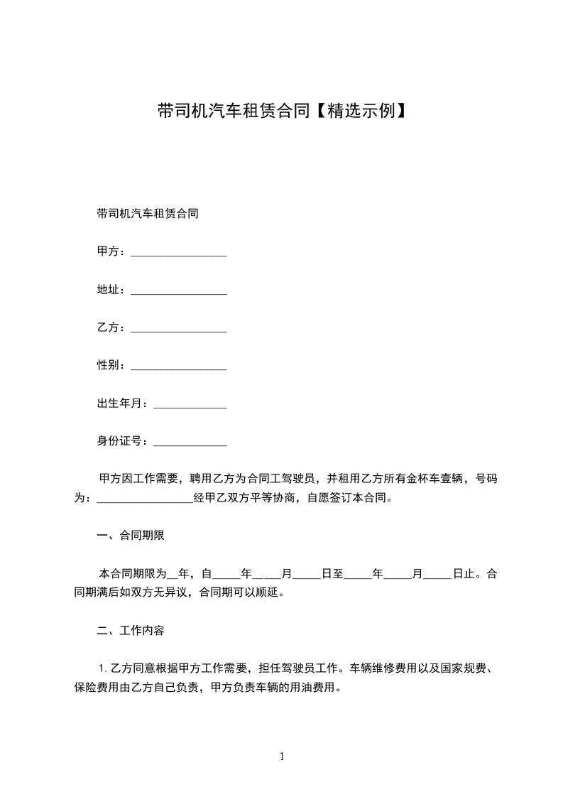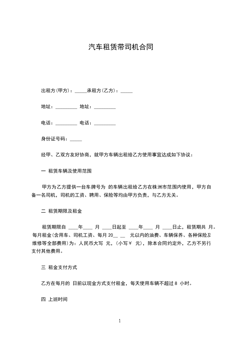 带司机汽车租赁合同