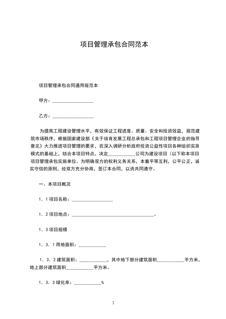 项目管理承包合同通用版范本