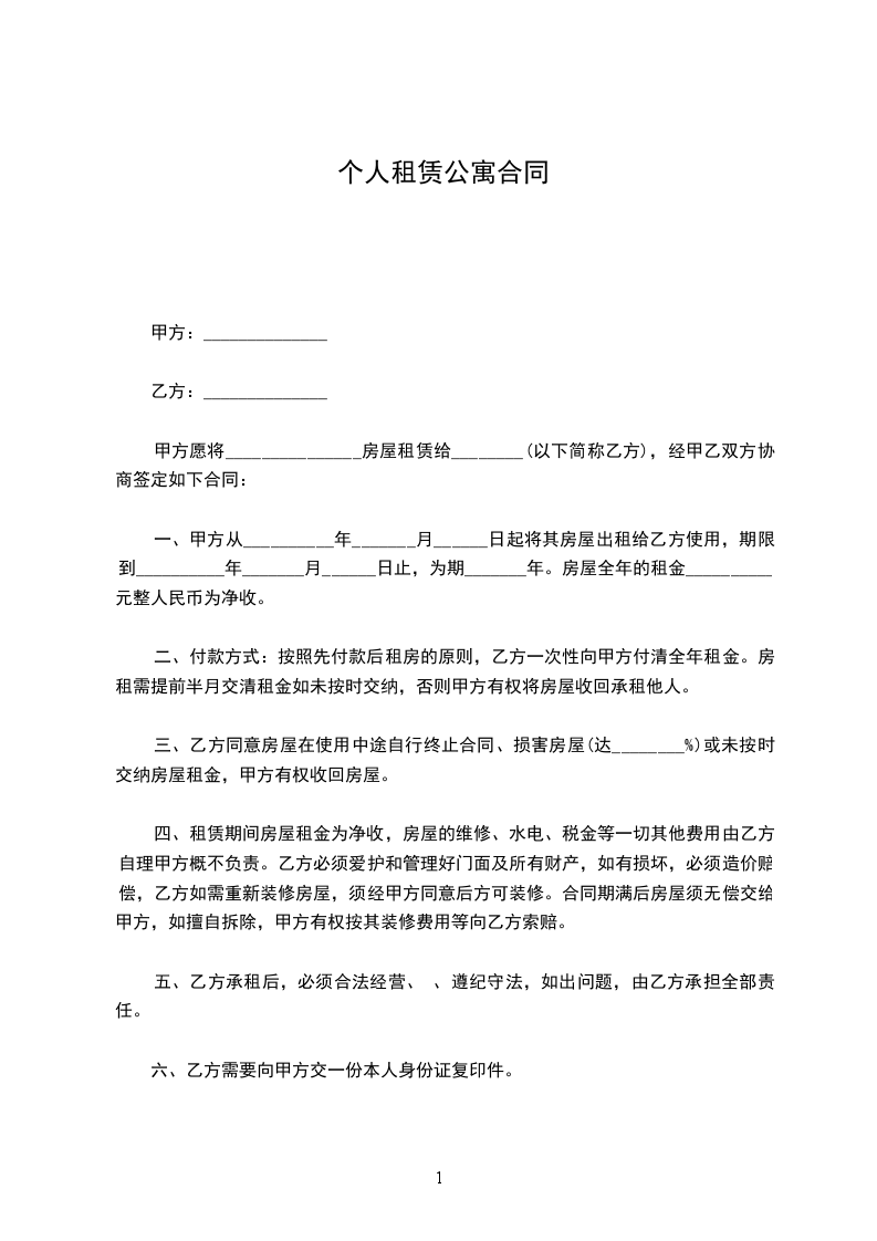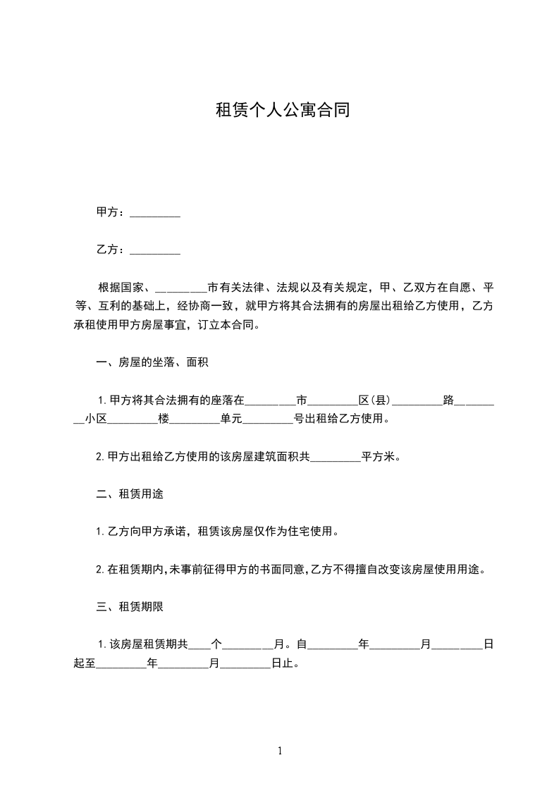 第一条 乙方租用甲方座落在 市 区 楼房____栋,建筑面积为 平方米,租用期一周年,自本合同生效之日开始计算。