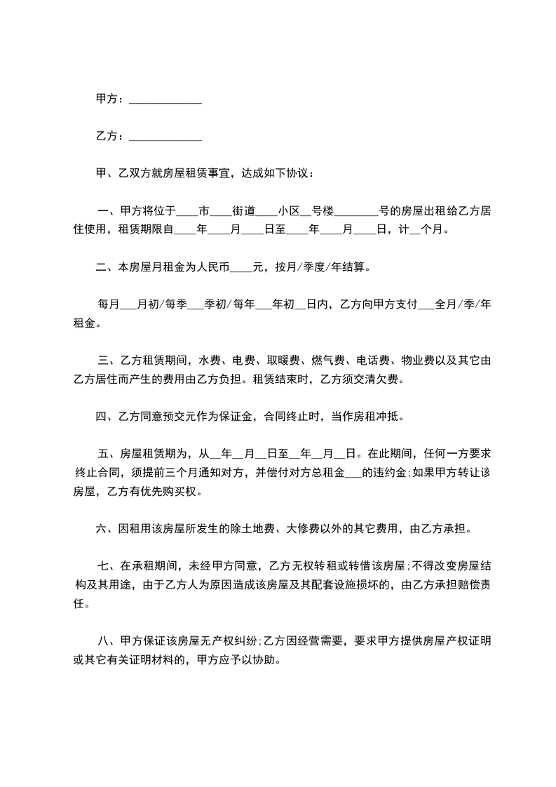甲、乙双方通过友好协商,就房屋租赁事宜达成如下协议: