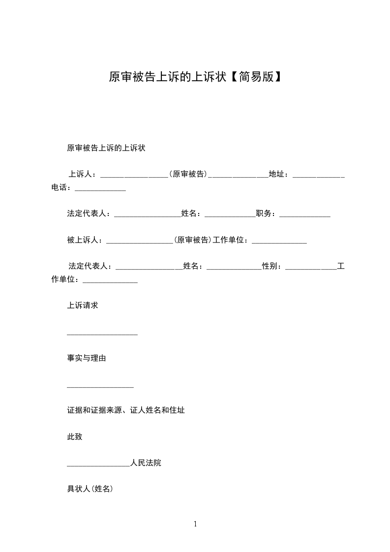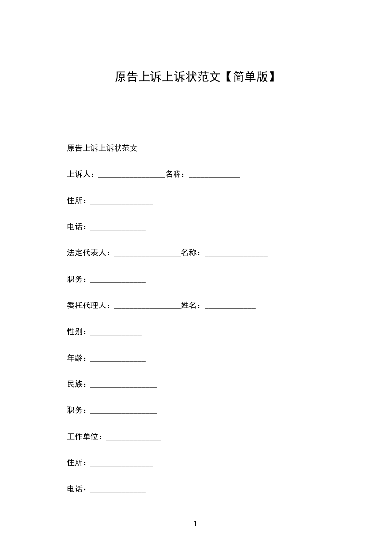 原告上诉状范文