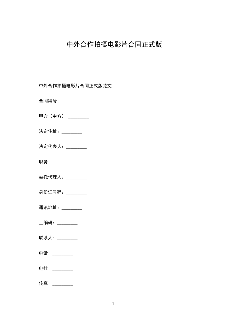 中外合作拍摄电影片合同正式版范文