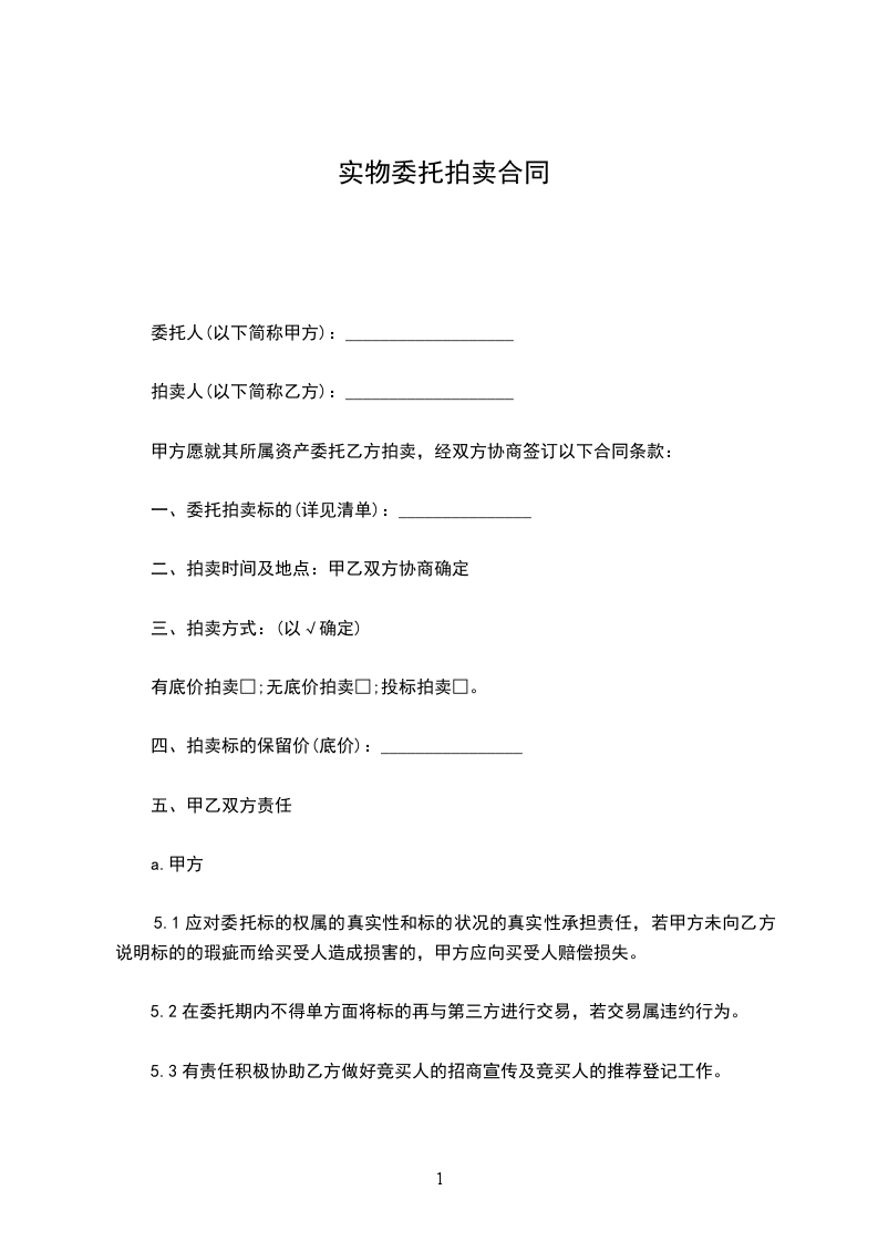 第一条甲方愿就下述拍卖物委托乙方依法公开拍卖(如拍卖对象为股权及某些无形资产,以下项目应作相应调整。)