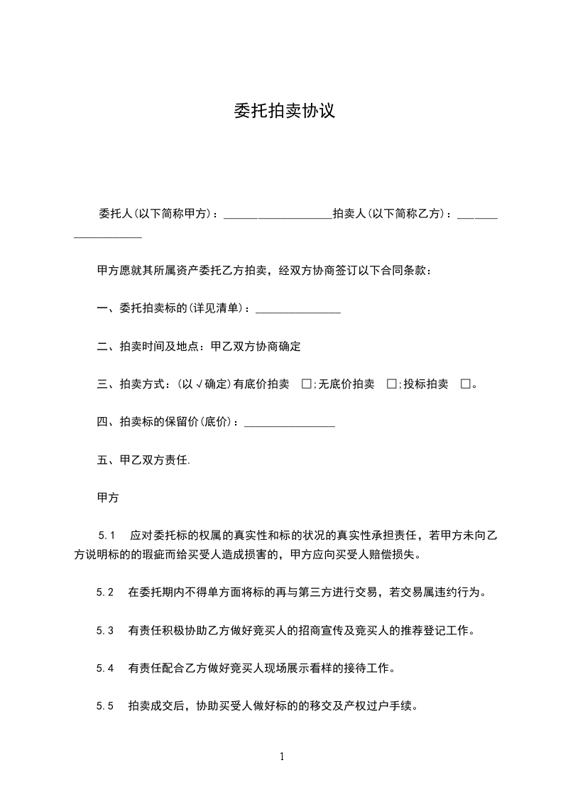 2.甲方可在法律允许的情况下确定拍卖物的底价乙方不得以低于该底价的价格进行拍卖,由此而造成不能成交的,甲方应承担责任。