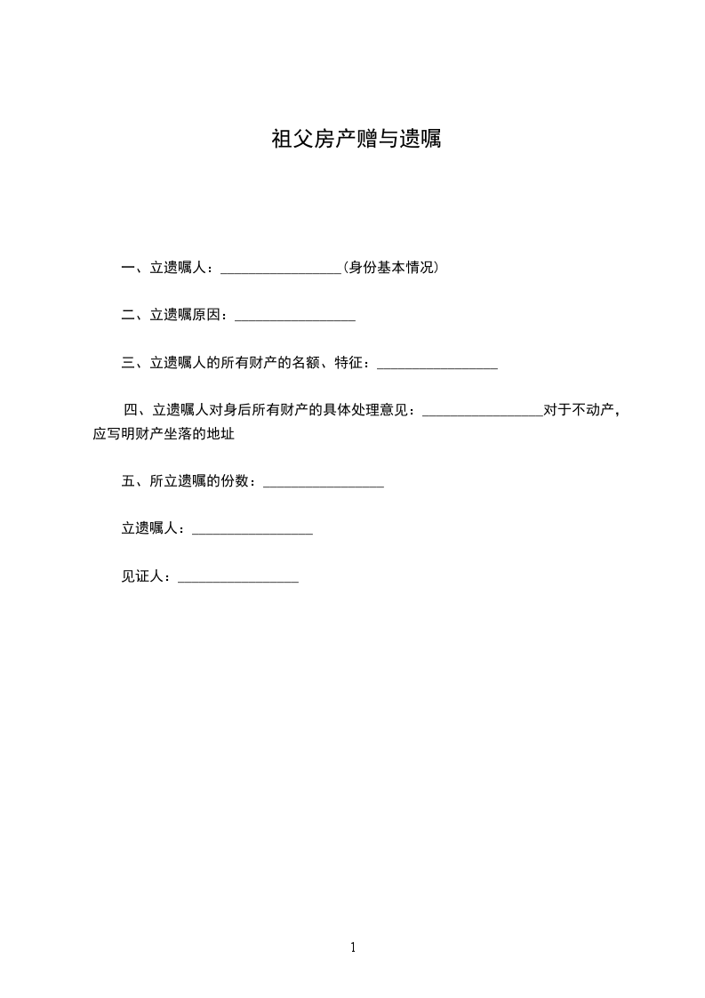 房产赠与遗嘱范本