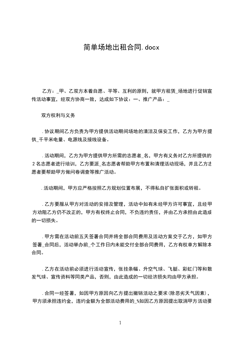 一、甲方应拥有合法的主体资格及对该场地的使用权,在合同订立后______日内提供租赁场地及约定的相关设备。