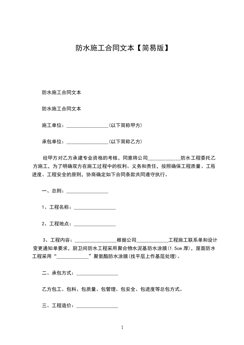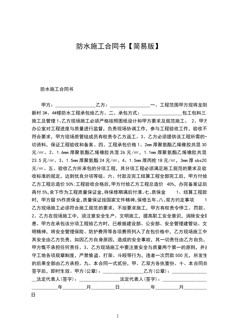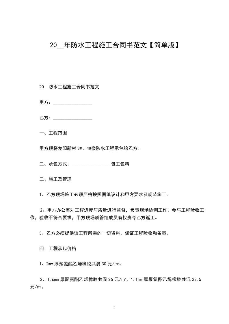 20__防水工程施工合同书范文