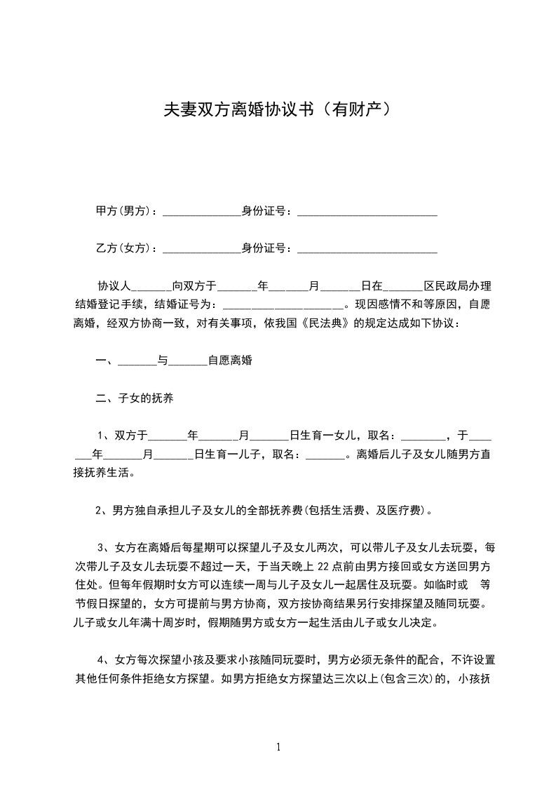 乙方(女方):身份证号: