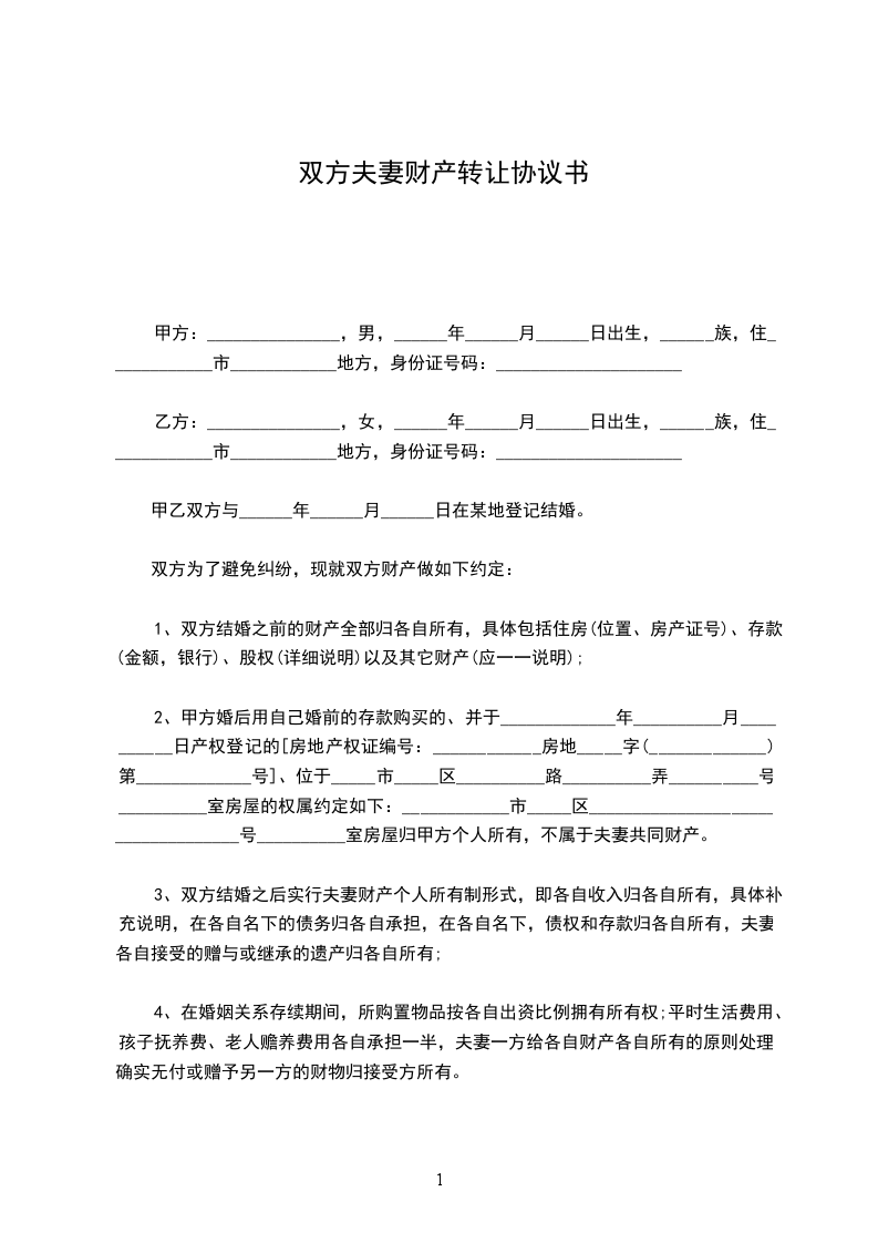一、双方于______年____月____日购买的位于市的房屋(以下简称“该房屋”),系乙方父母出资人民币_____圆整所购买,现房屋产权登记人为甲方。该房屋(包括但不限于婚姻关系存续期间所偿还的全部房屋贷款部分)及房内全部物品、设施归乙方个人所有,不作为双方的夫妻共同财产。