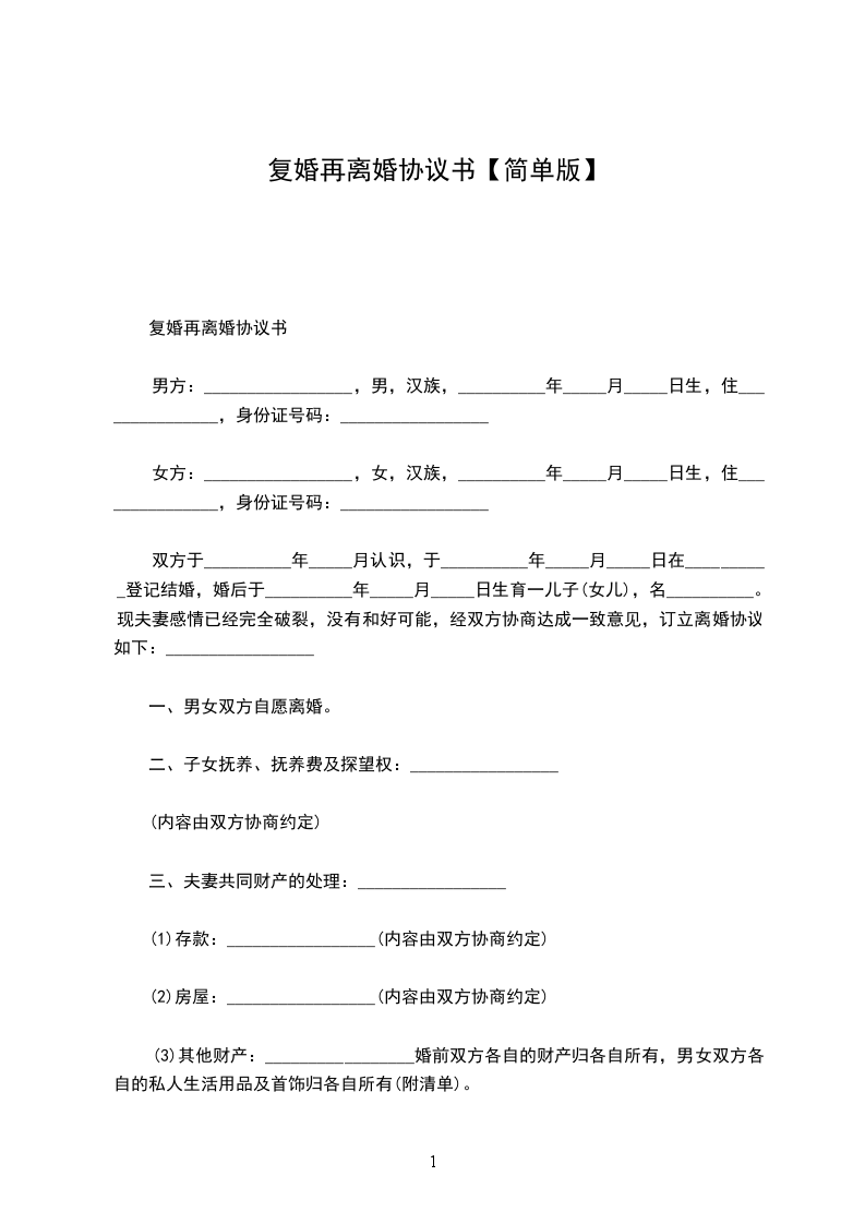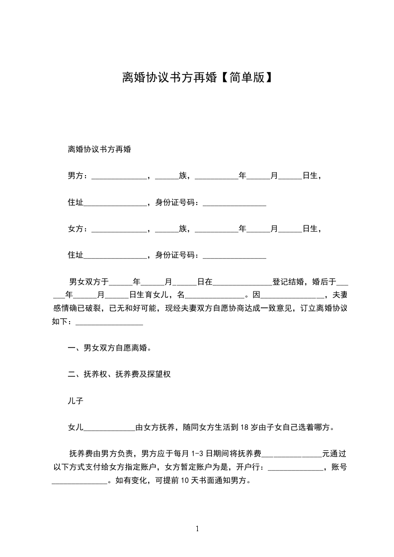 女方:_________________,女,汉族,__________年_____月_____日生,住_______________,身份证号码:_________________