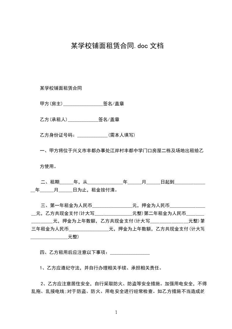 某学校铺面租赁合同