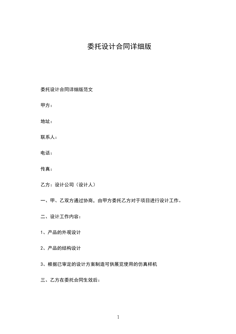 委托设计合同详细版范文