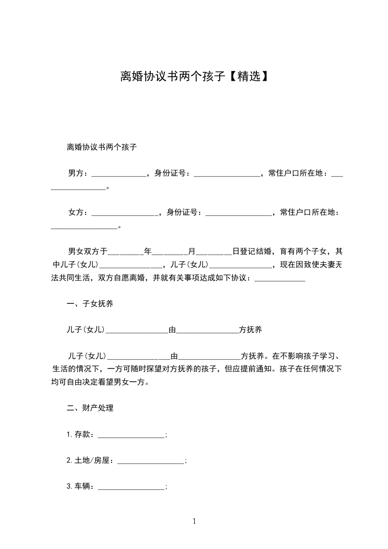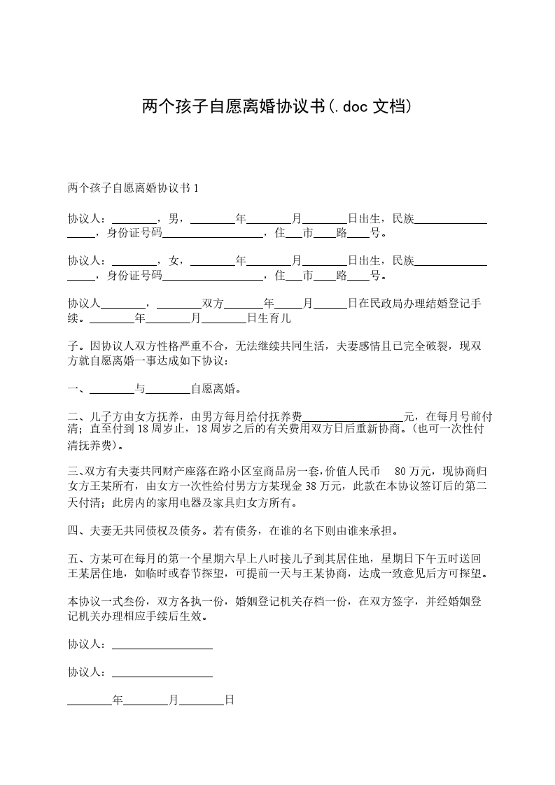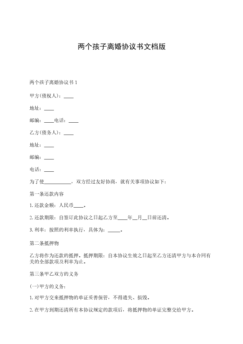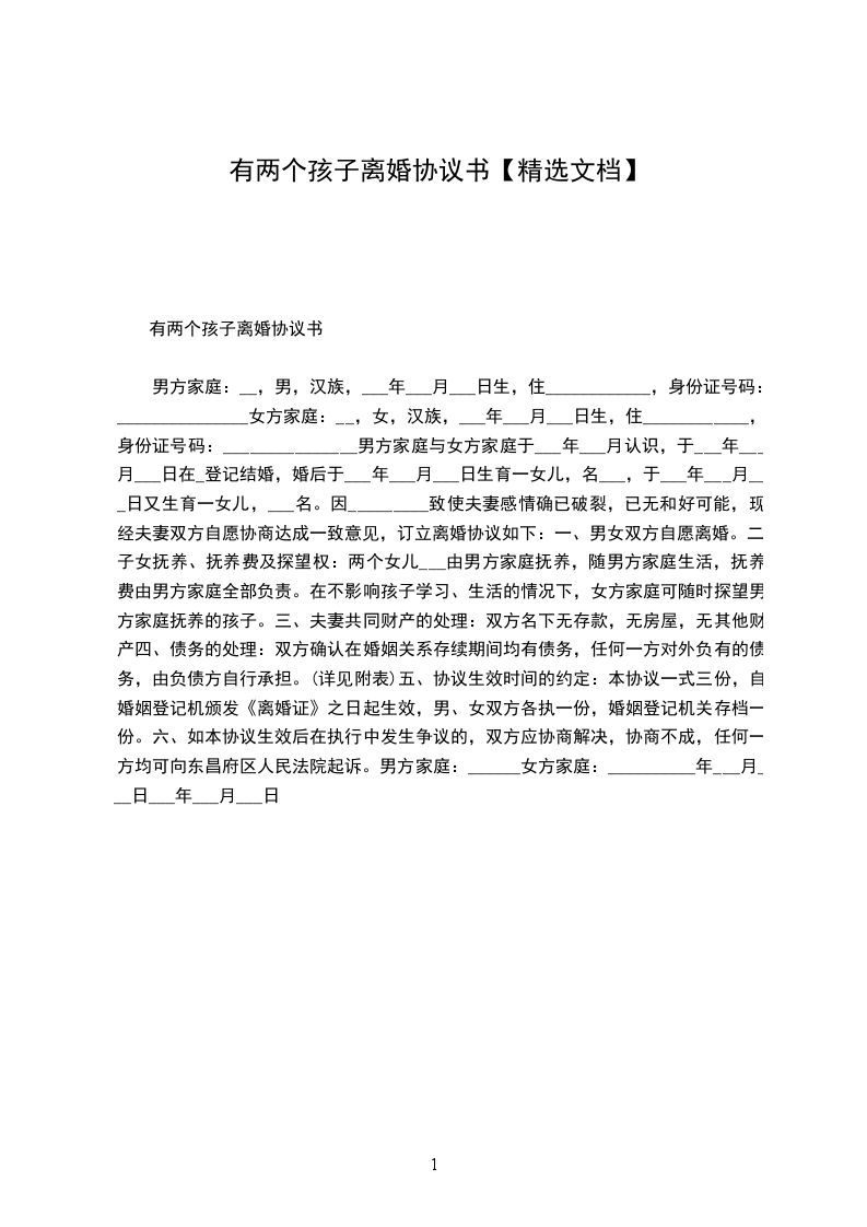 有两个孩子离婚协议书