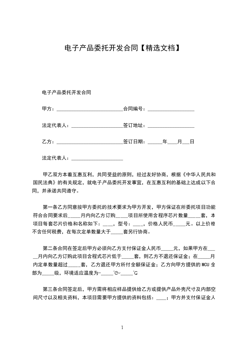 甲乙双方本着互惠互利,共同受益的原则,经过友好协商,根据《中华人民共和国民法典》的有关规定,就电子产品委托开发事宜,在互惠互利的基础上达成以下合同,并承诺共同遵守。