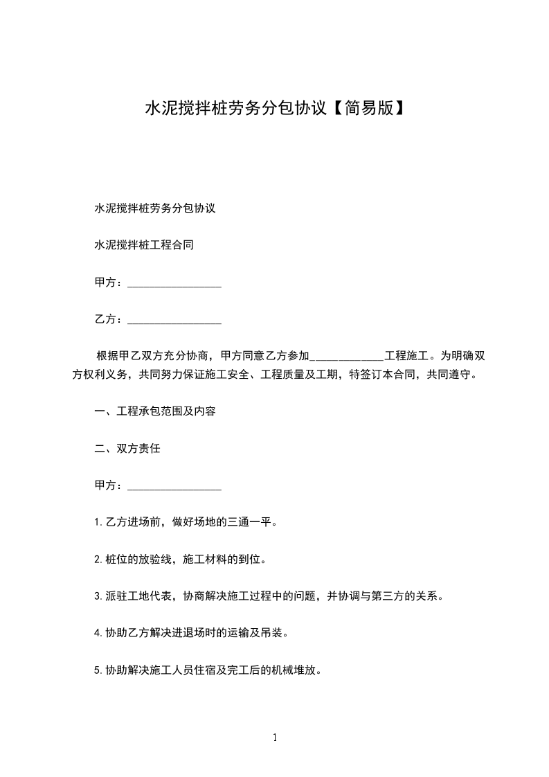 水泥搅拌桩劳务分包协议