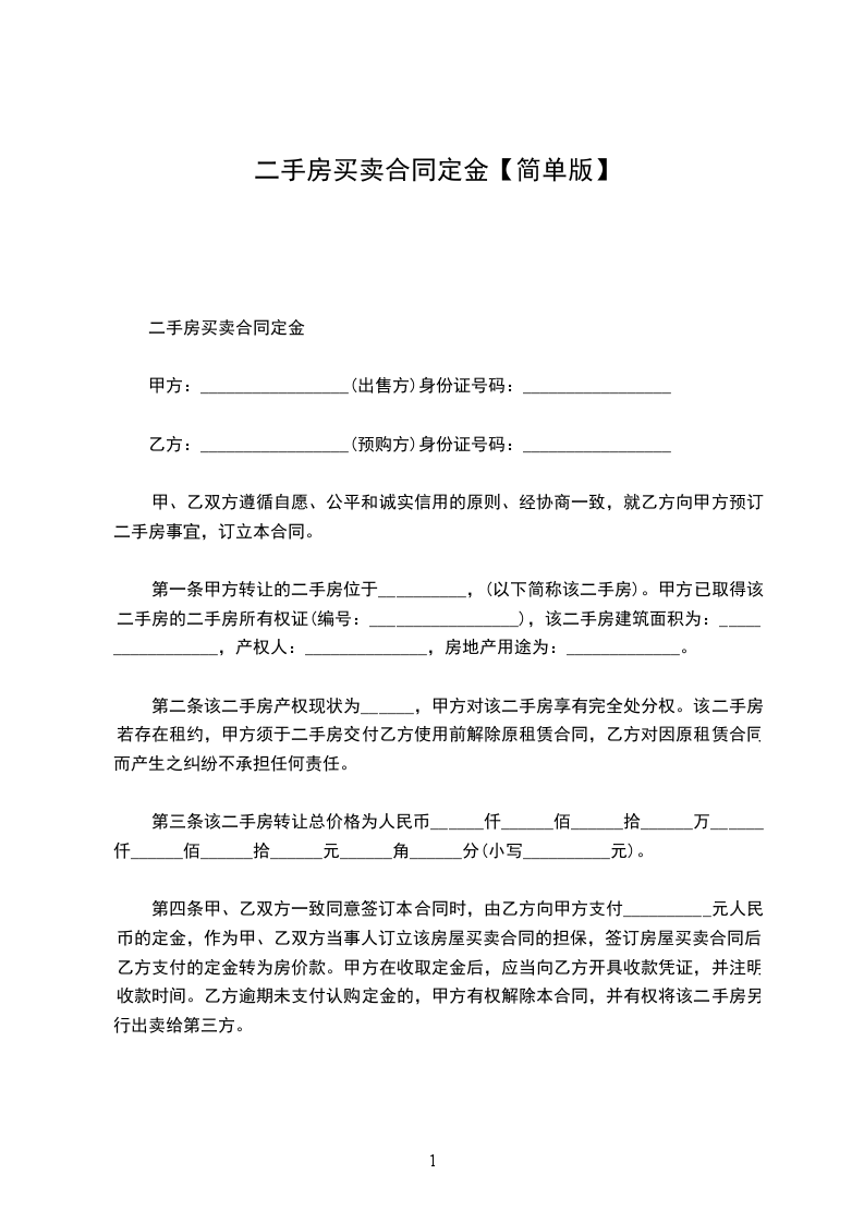 二、乙方同意签订本协议时,支付甲方定金人民币______________元(小写)______________元(大写),甲乙双方签订《房屋买卖合同》后,乙方支付的定金自动转为购房款。