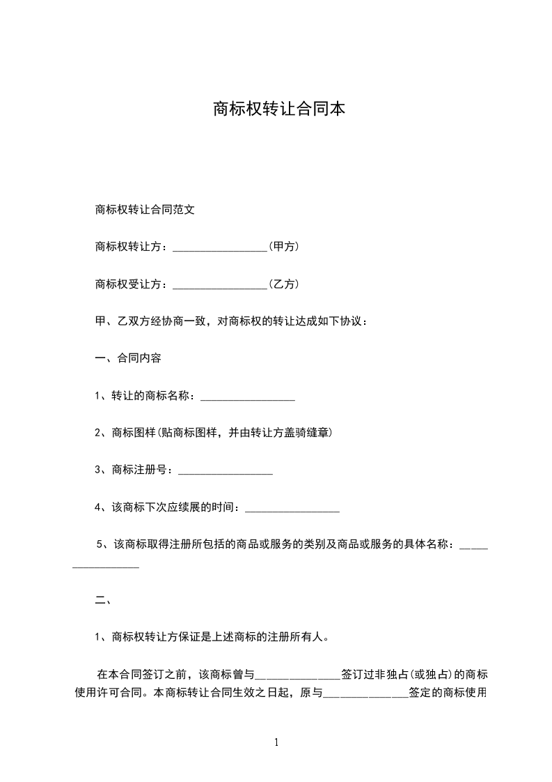 商标权转让方:_________________(甲方)