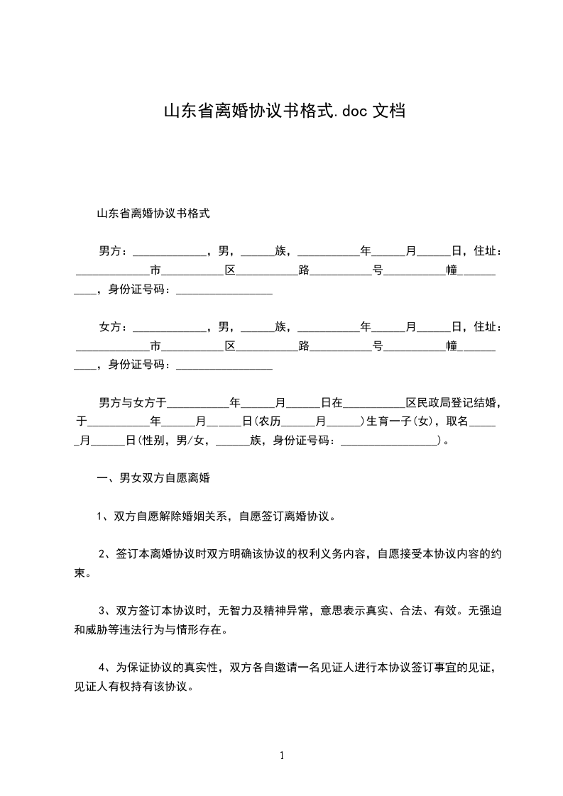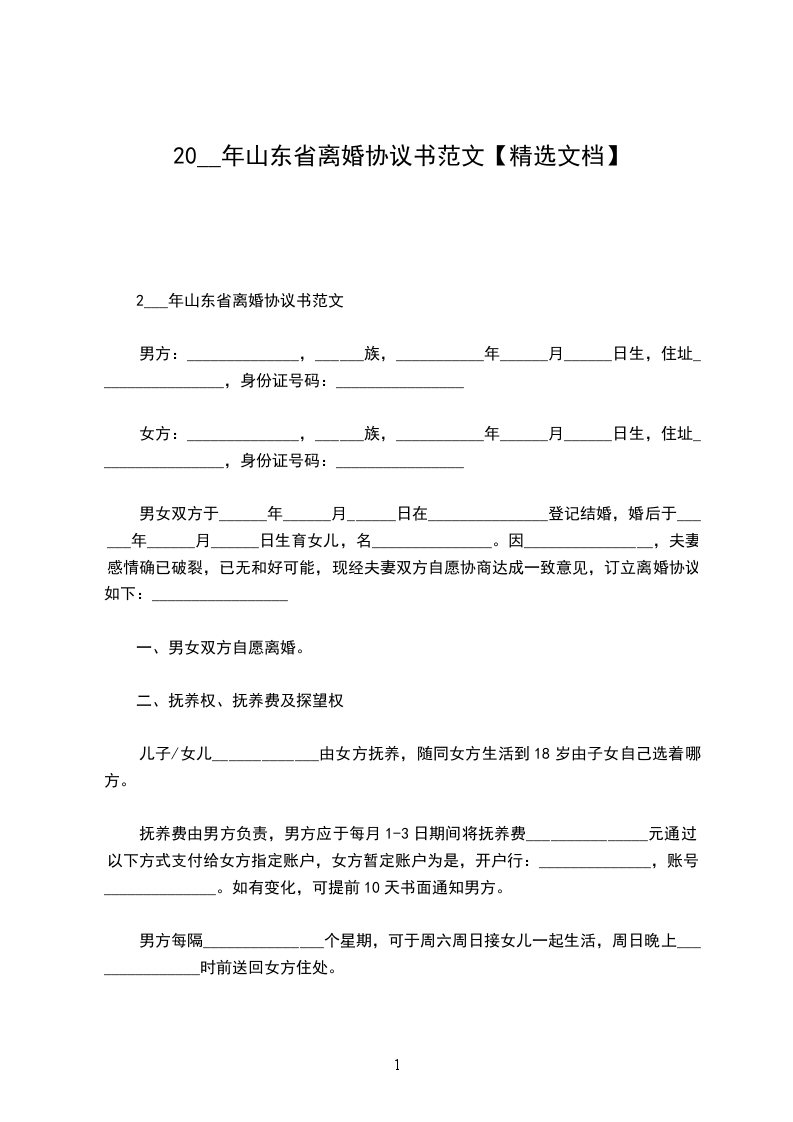 2___年山东省离婚协议书范文