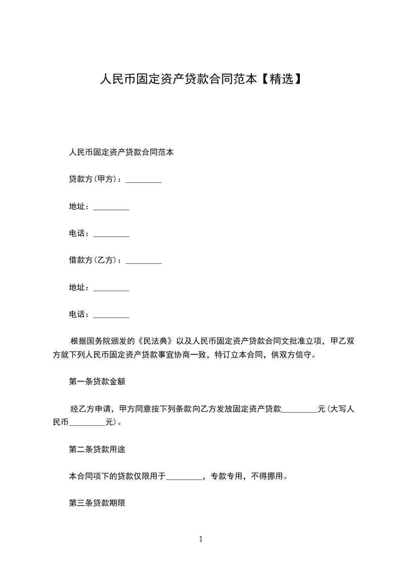 根据国务院颁发的《民法典》以及人民币固定资产贷款合同文批准立项,甲乙双方就下列人民币固定资产贷款事宜协商一致,特订立本合同,供双方信守。