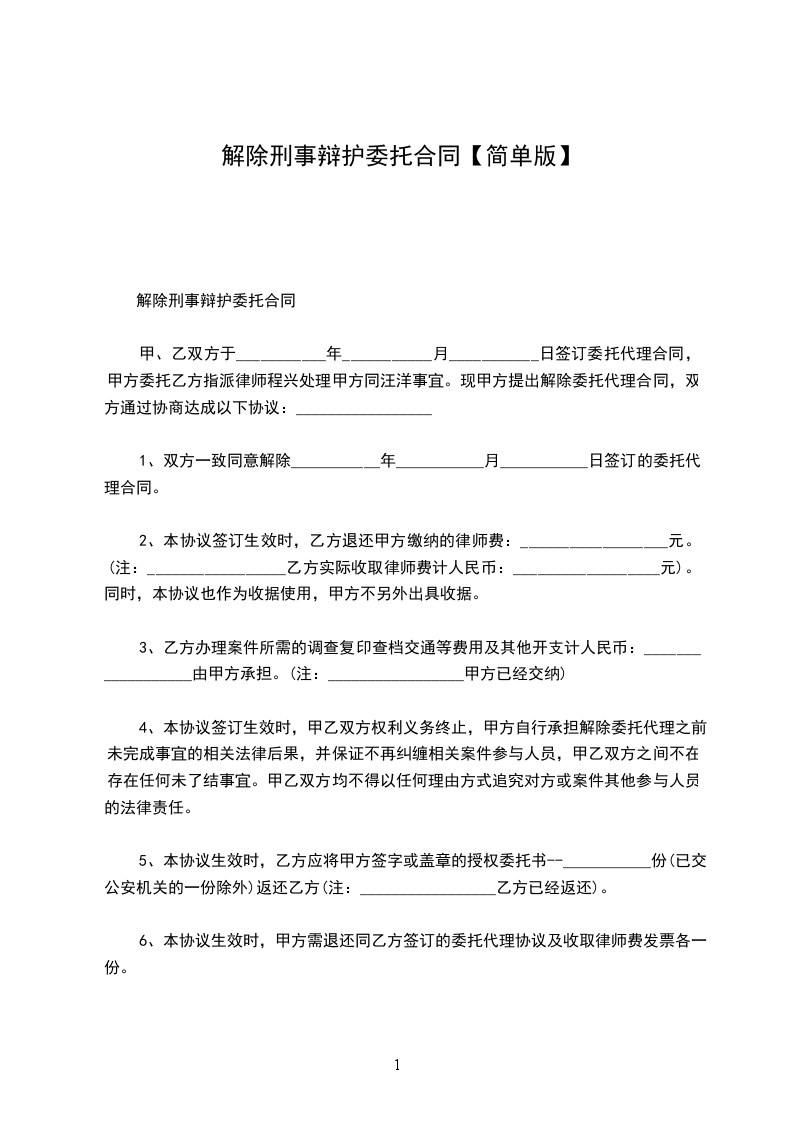 解除刑事辩护委托合同