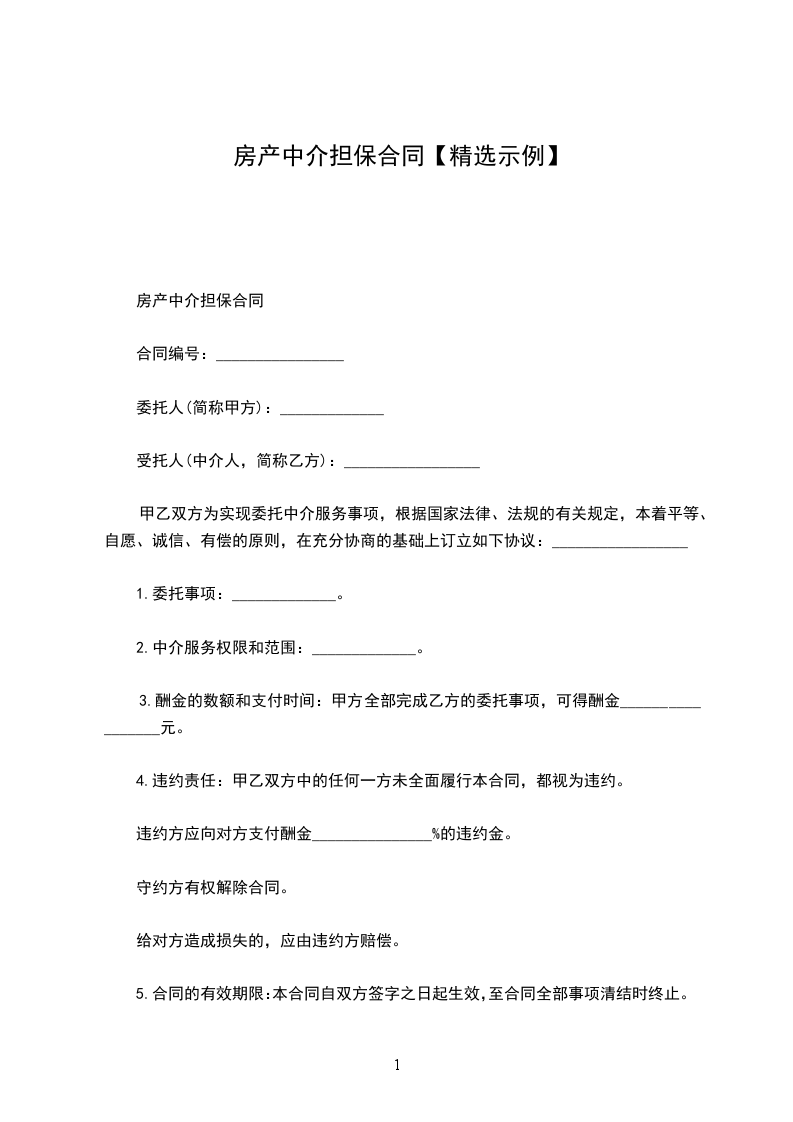 房产中介担保合同