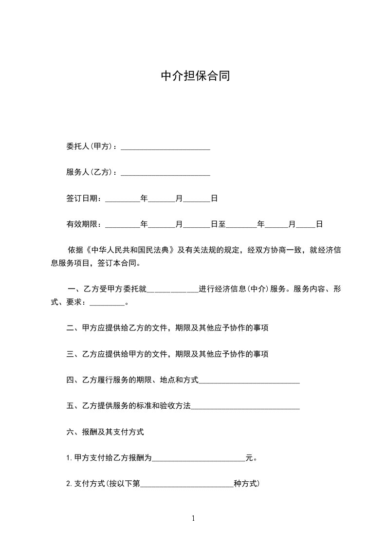 甲乙双方为实现委托中介服务事项,根据国家法律、法规的有关规定,本着平等、自愿、诚信、有偿的原则,在充分协商的基础上订立如下协议:_________________