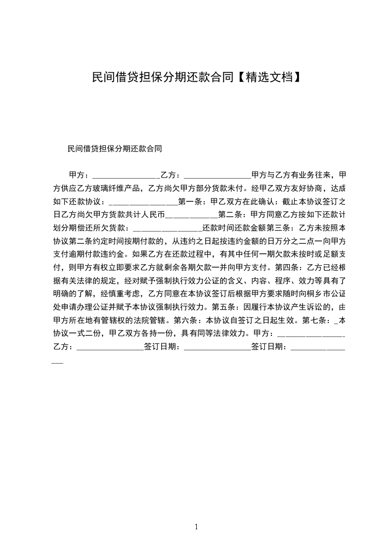 民间借贷担保分期还款合同