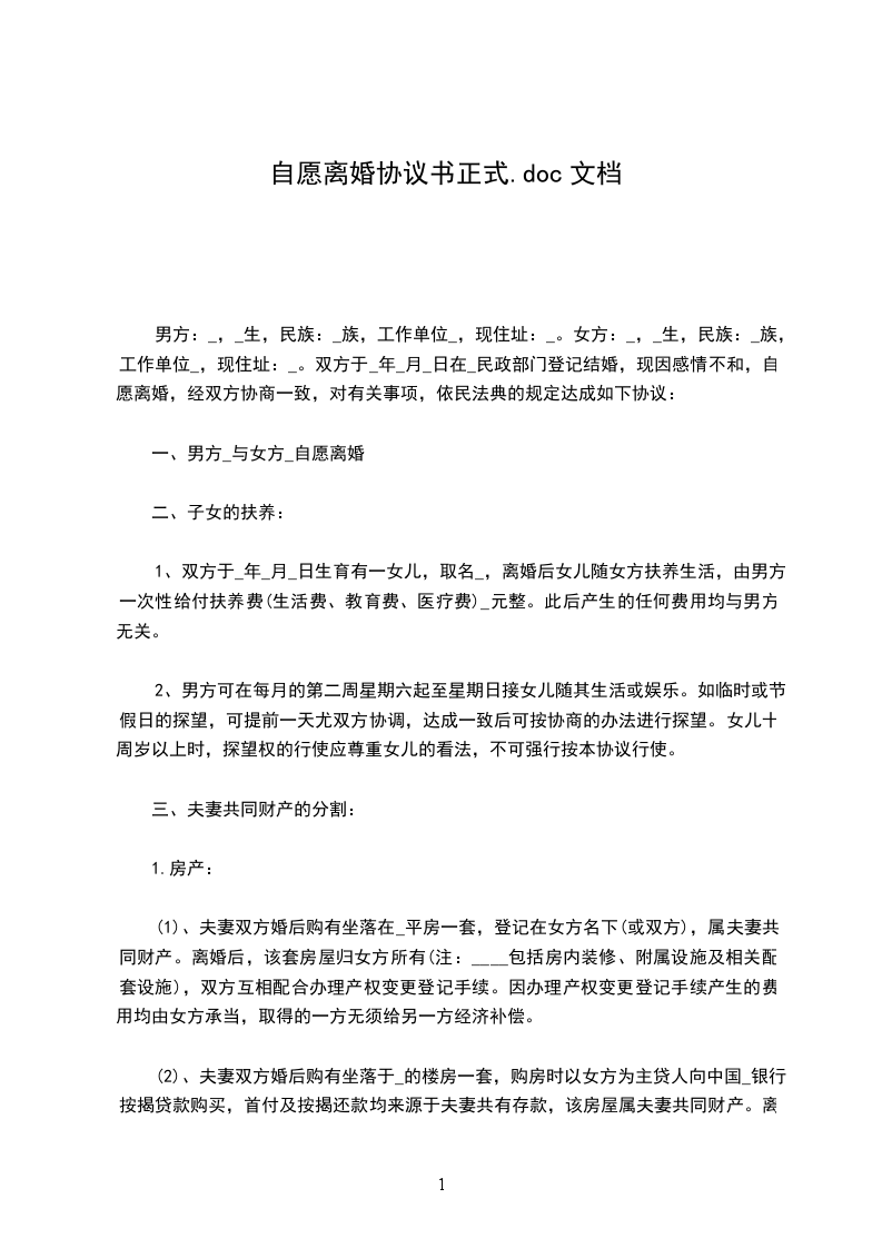 男方与女方于___________年________月_______日在区民政局登记结婚,于___________年________月_______日(农历月初)生育一子(女),取名(性别,男/女,汉族,身份证号码:__________________________)。后双方常因琐事吵架,长期感情不和,致使夫妻感情破裂,已无和好可能,现双方自愿协商达成一致意见,订立离婚协议如下: