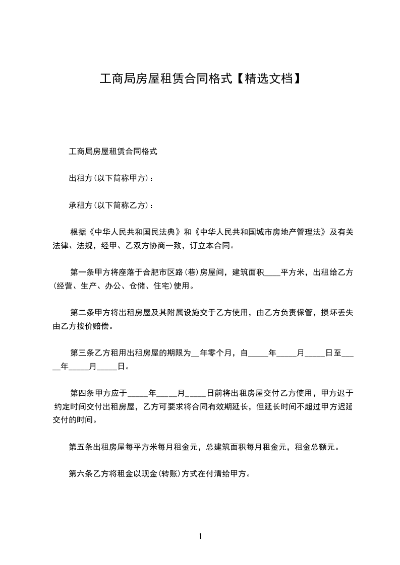 工商局房屋租赁合同格式