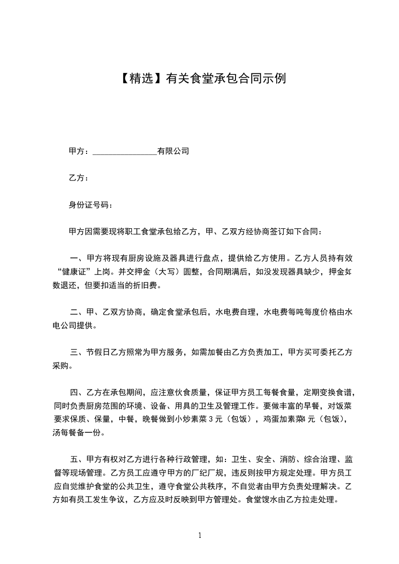 根据《民法典》及相关法律规定,甲乙双方就甲方食堂承包事宜共同协商,达成如下事宜: