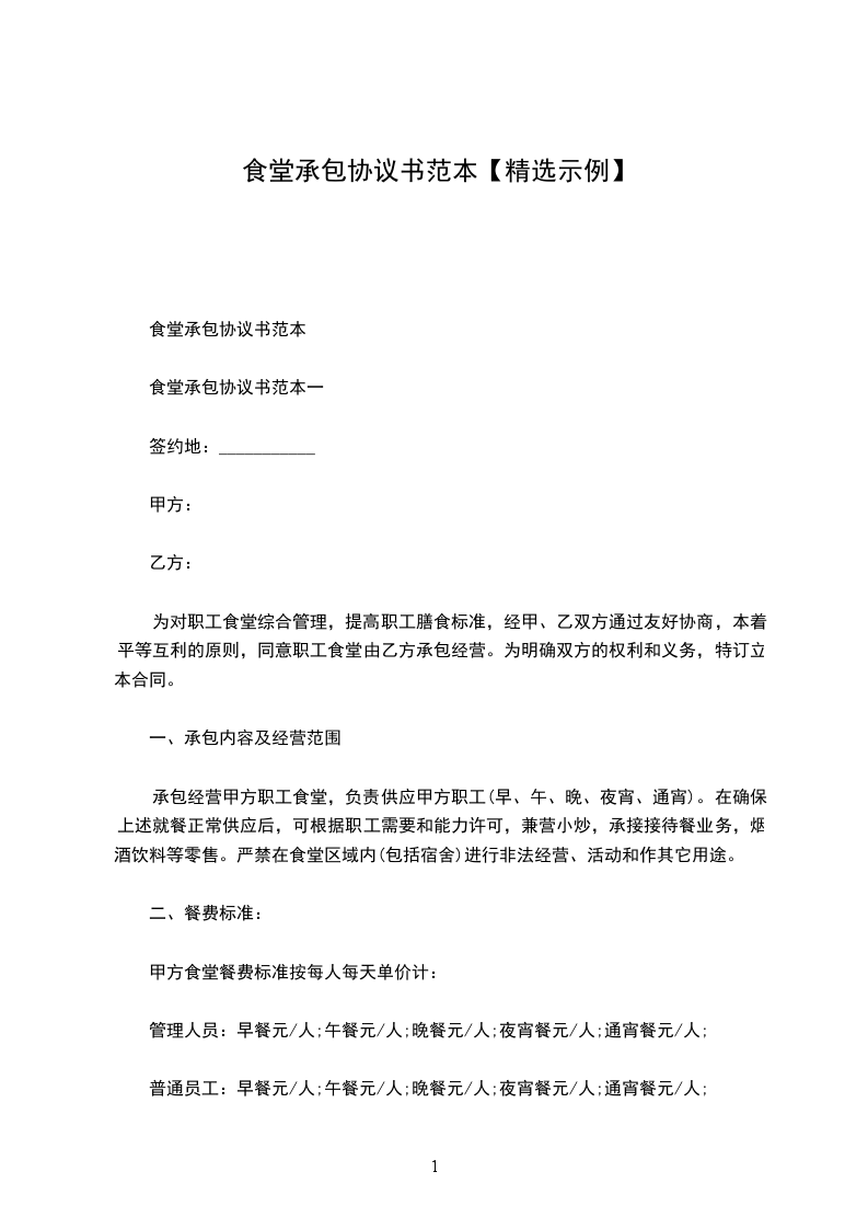 食堂承包协议书范本