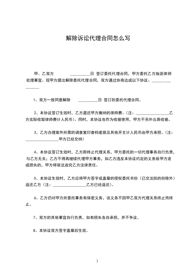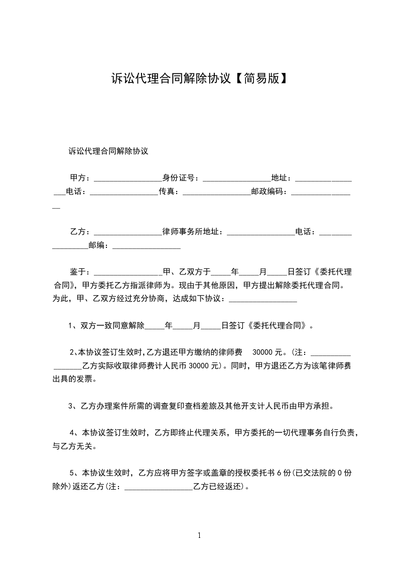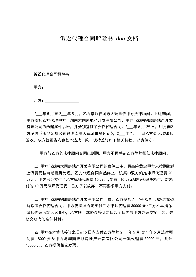 诉讼代理合同解除协议
