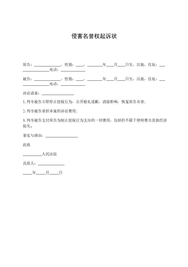 原告:______________,性别:____,________年____月____日生,汉族,住址:_________________电话:_____________