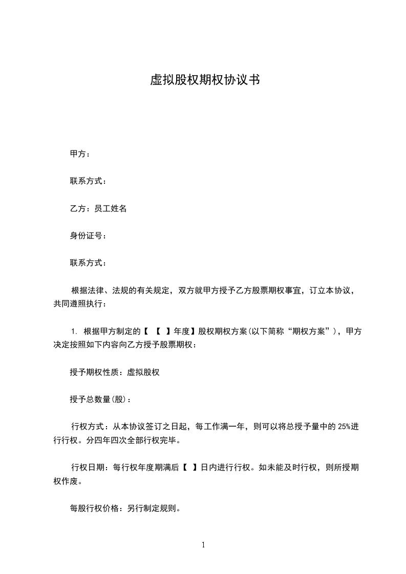 授予期权性质:虚拟股权