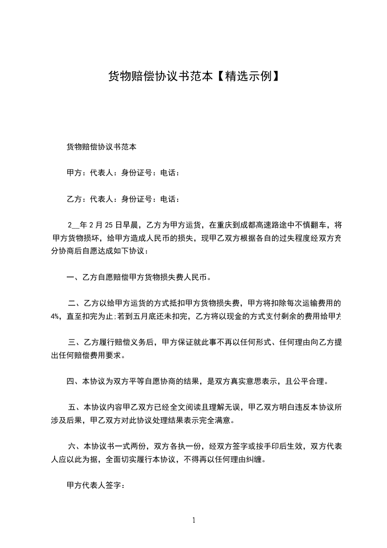 2__年2月25日早晨,乙方为甲方运货,在重庆到成都高速路途中不慎翻车,将甲方货物损坏,给甲方造成人民币的损失,现甲乙双方根据各自的过失程度经双方充分协商后自愿达成如下协议: