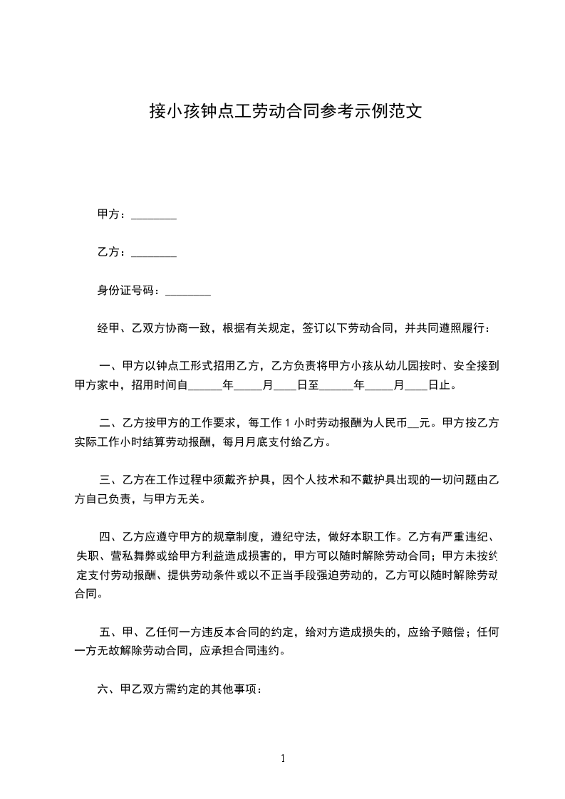 甲方因工作需要,特聘用乙方为公司钟点工,经甲乙双方协商一致,签订如下协议:_________________