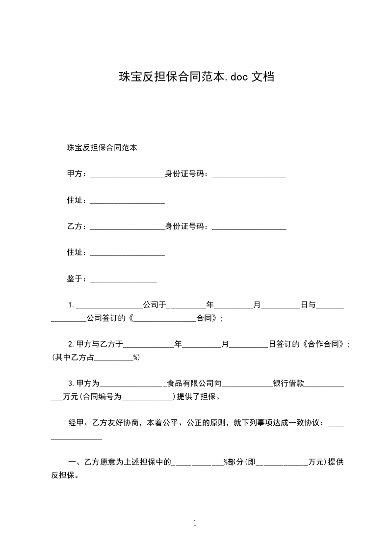 珠宝反担保合同范本