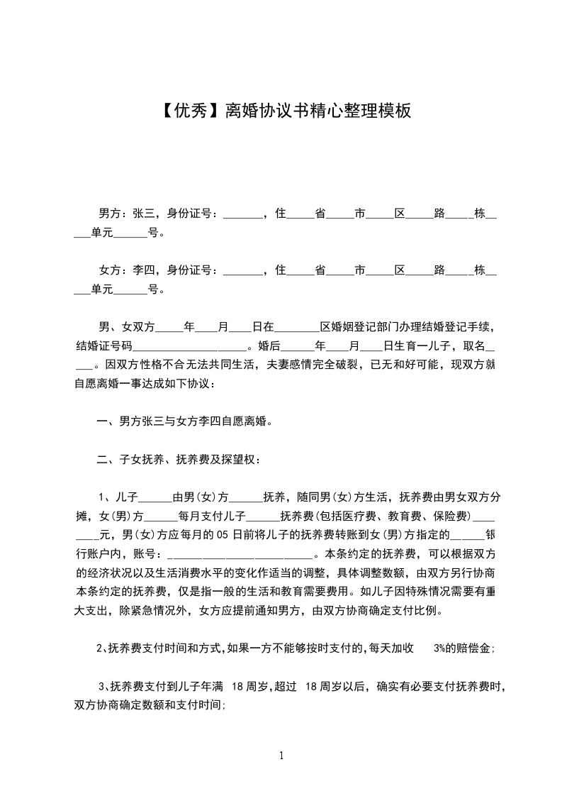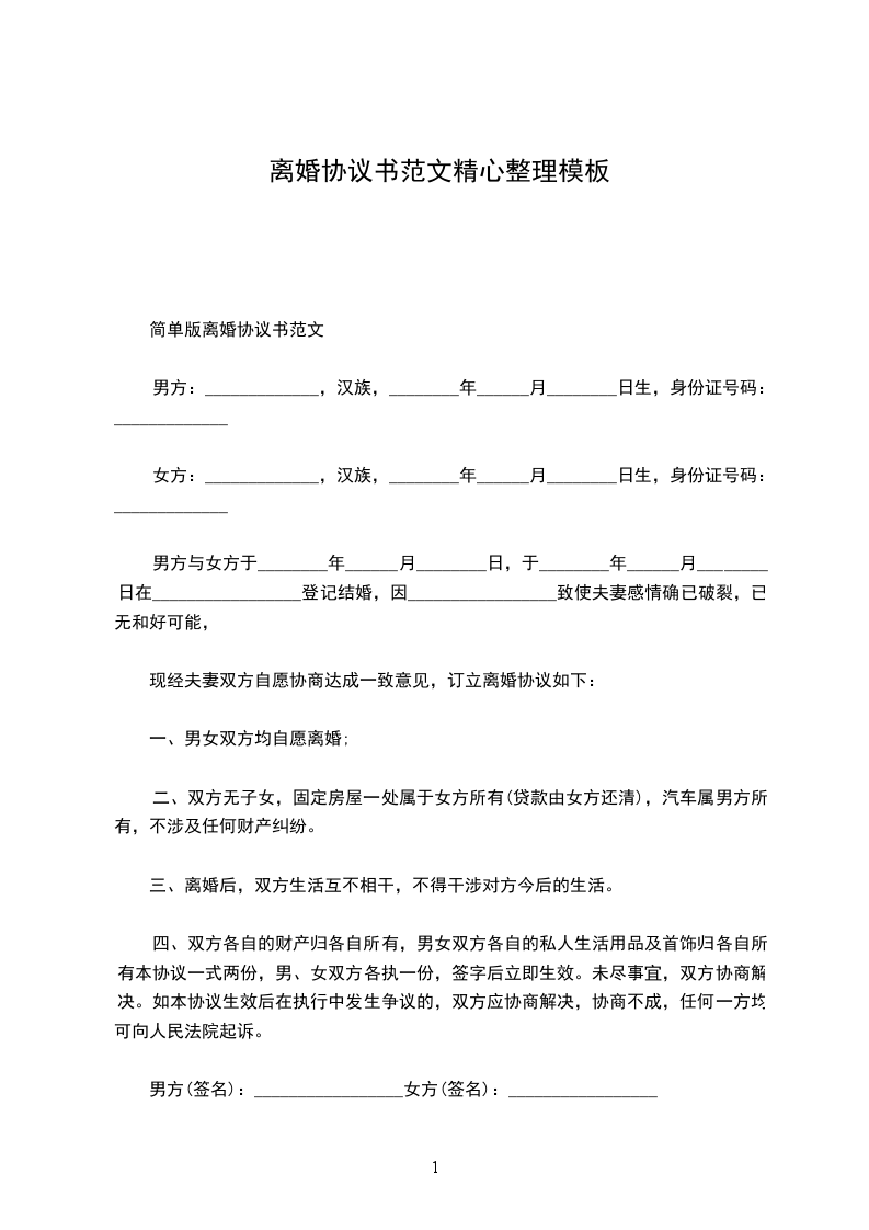 简单版离婚协议书范文