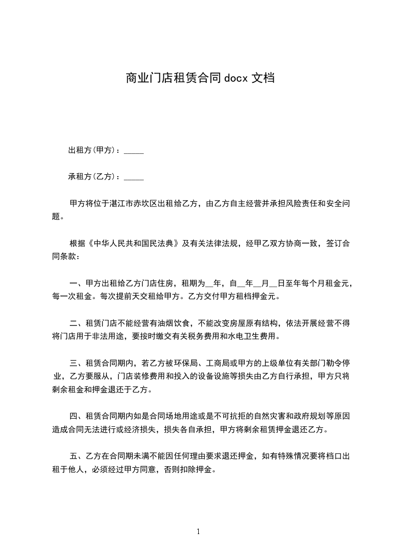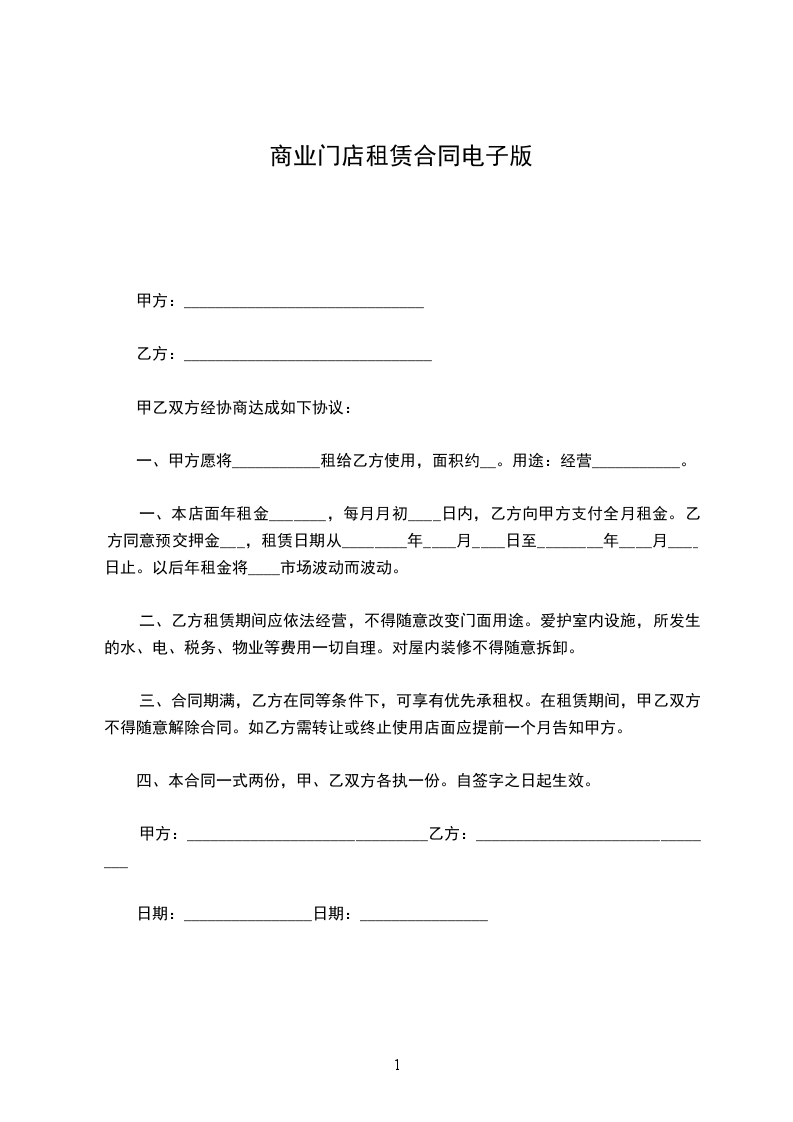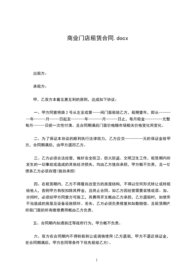 商业门店租赁合同