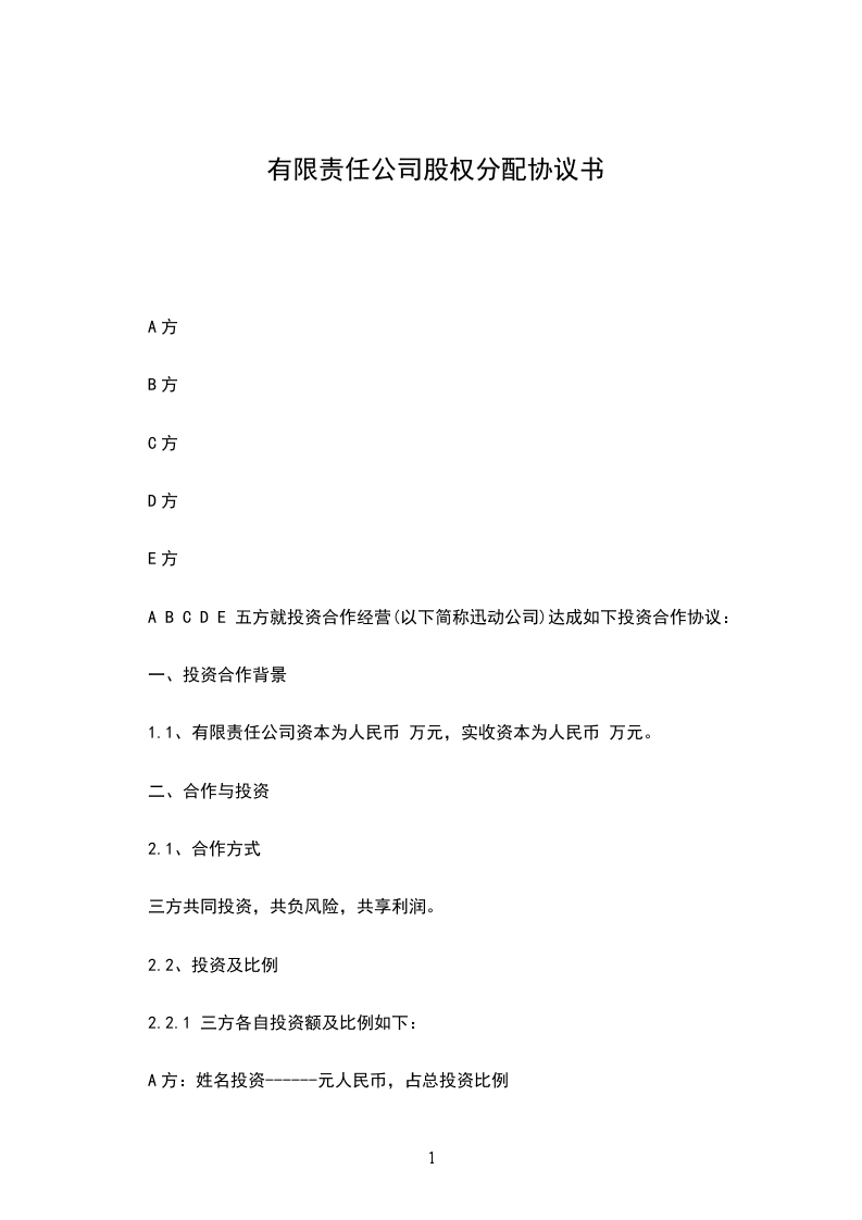 根据《中华人民共和国公司法》,我们各股东经过慎重研究,一致同意按照该法律规定,自愿出资申请设立一个有限责任公司,特制定协议如下: