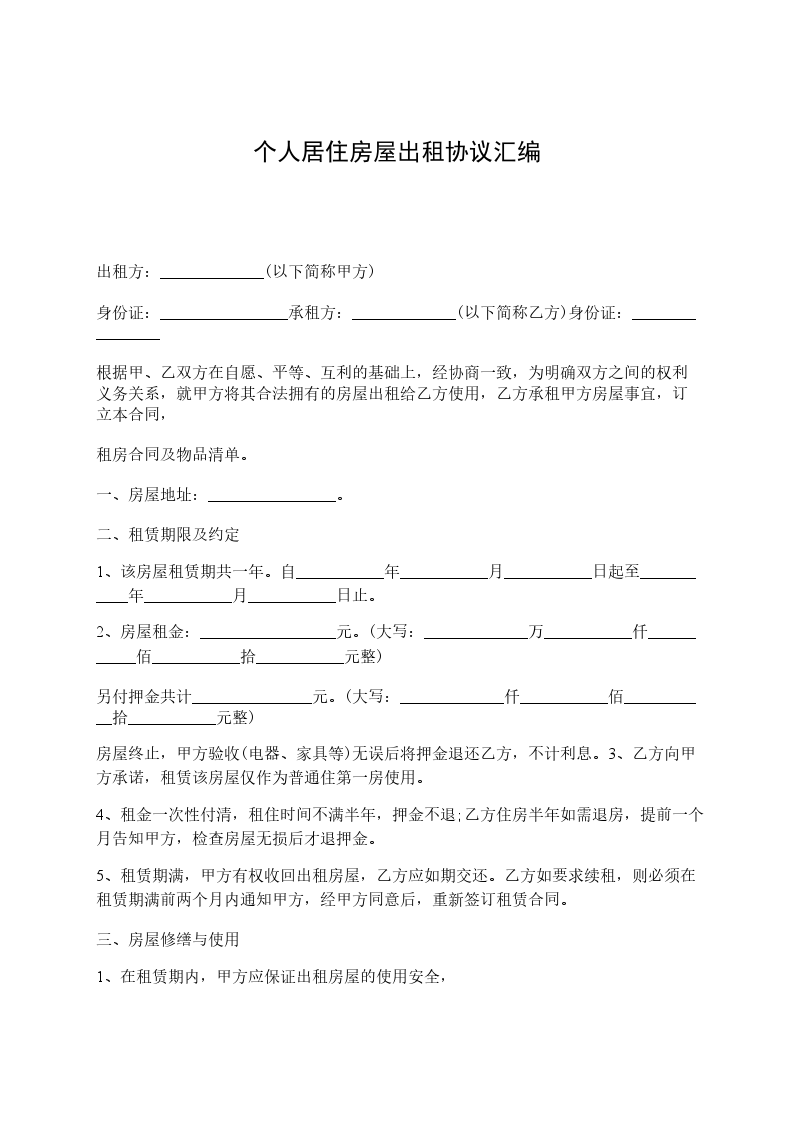 甲、乙双方通过友好协商,就房屋租赁事宜达成协议如下:
