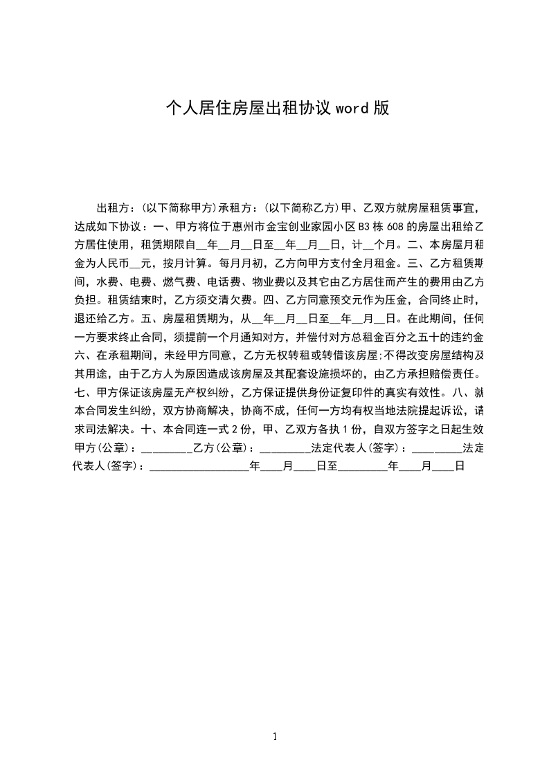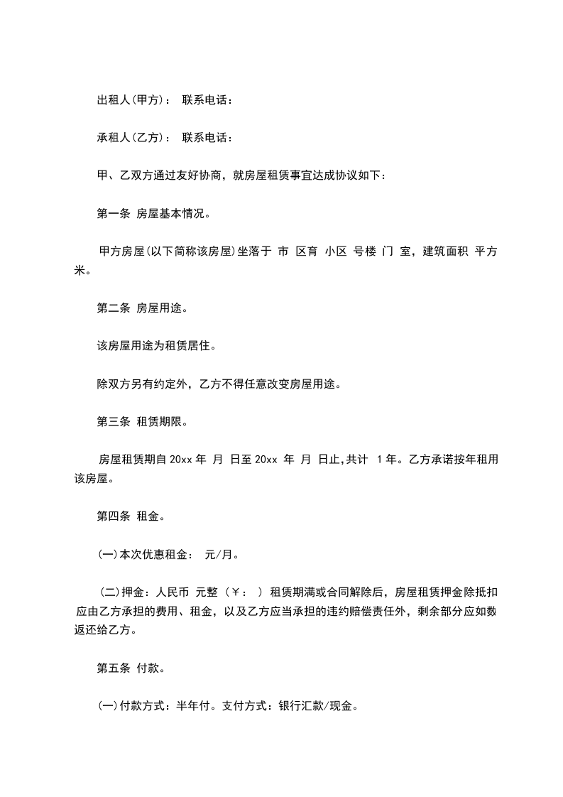 房屋租赁期自20xx年 月 日至20xx 年 月 日止,共计1年。乙方承诺按年租用该房屋。