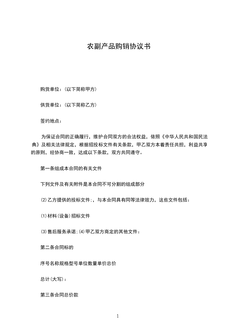 为了促进农副产品生产的发展,沟通城乡流通渠道,为城镇人民和对外贸易提供丰富的农副产品,经甲、乙双方充分协商,特订立本合同,以便双方共同遵守。