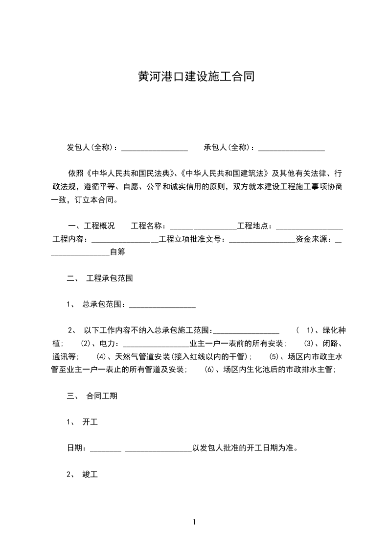 4.本合同工程的施工期为 个月(天),或:自 年 月 日至 年 月 日。