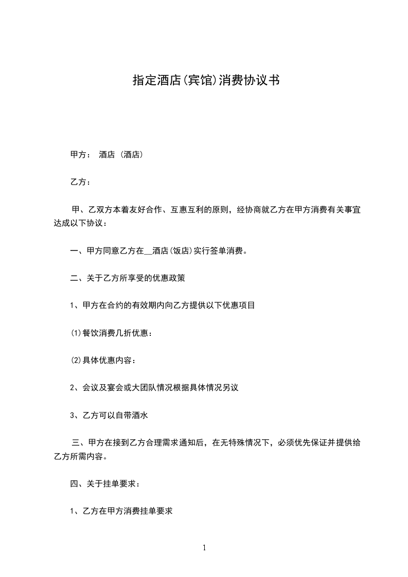 一、甲方同意乙方在__酒店(饭店)实行签单消费。
