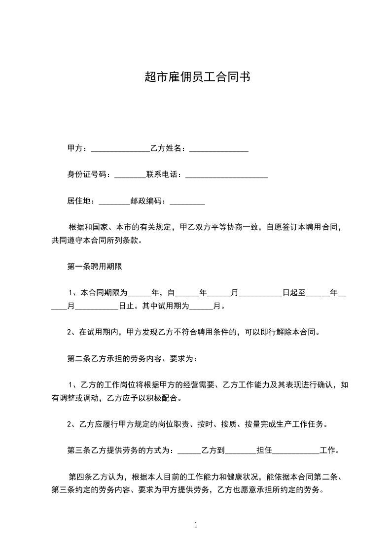第一条 本合同于 年 月 日生效,期限 年,其中试用期至 年 月 日止。