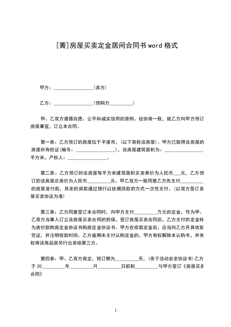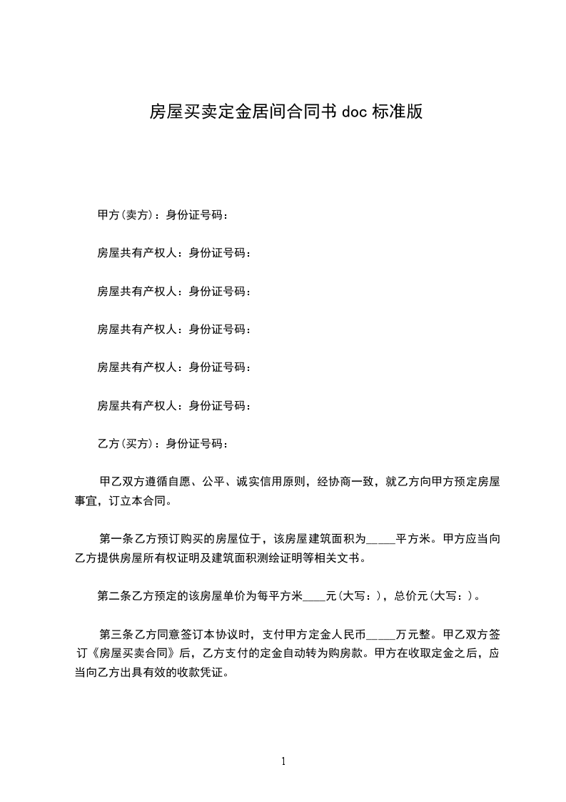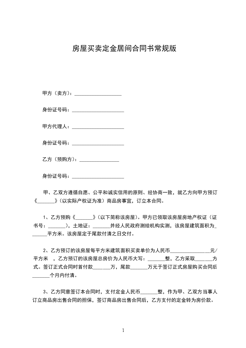 1、在支付以上定金后,甲方同意于 年 月 日 以前,在丙方居间监督下同乙方签定该物业的居间成交书面合同。