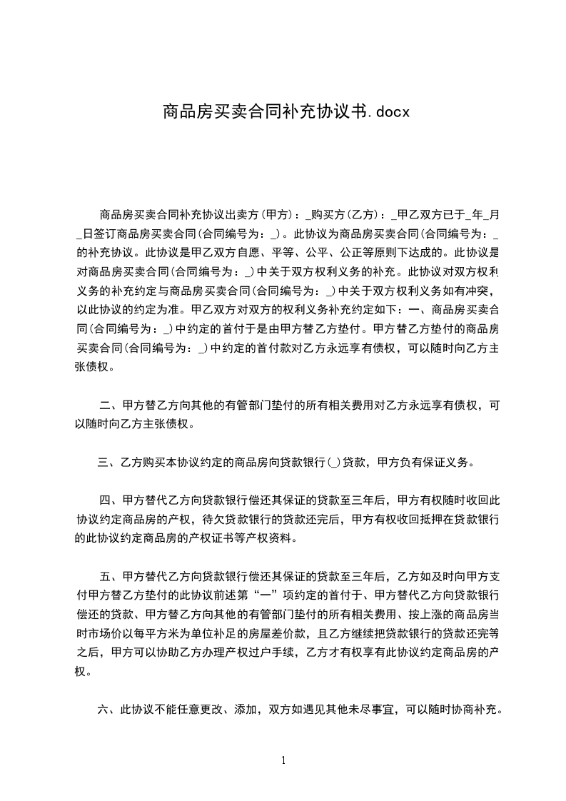 6.本补充协议一式伍份,甲方肆份,乙方壹份。经甲乙双方签字盖章后生效。