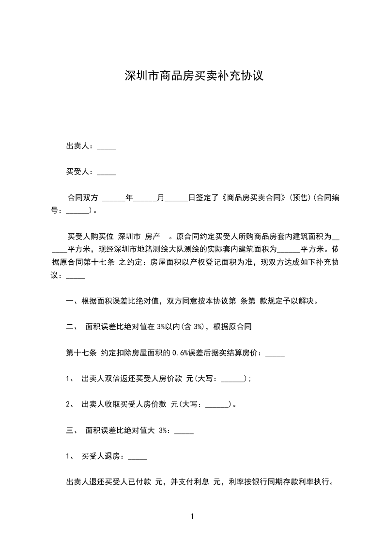 二、对《重庆市商品房买卖合同》第六条“面积确认及面积差异处理”的补充约定